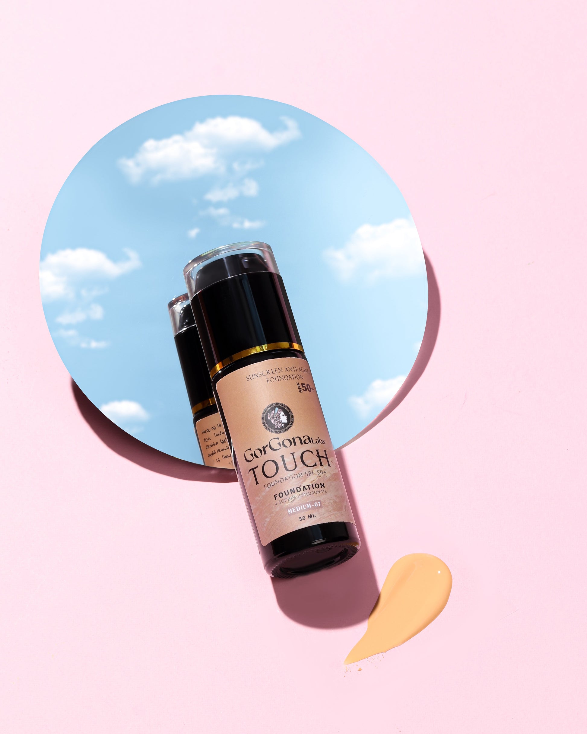 فاونديشن طبي متوفر بـ4 درجات تناسب كل أنواع البشرة بتغطية عالية، حماية +SPF 50.